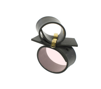 Eine Ringschiene und vier ebenfalls gelochte Streifen aus Gummi (EPDM) lassen sich anhand einer veredelten und so dem Alltag enthobenen Musterbeutelklammer im Handumdrehen zu unterschiedlichen, mehr oder weniger üppigen Ringvarianten zusammenstecken.