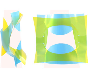 Durch das Überziehen wölbt sich das Objekt um den Arm und erhält so seine eigentliche Schmuckform mit einer nun räumlichen Ausdehnung. Es entsteht eine sichtbare Spannung im Material, die den Schmuck am Körper fixiert. Von der Seite betrachtet schmiegt sich die Form an, von vorne gesehen dehnt sie sich aus, rahmt den Arm ein und überwuchert ihn. Je nach Farbe kontrastiert das Schmuckstück den Körper oder verbindet sich mit ihm.