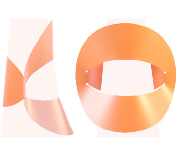 Durch das Überziehen wölbt sich das Objekt um den Arm und erhält so seine eigentliche Schmuckform mit einer nun räumlichen Ausdehnung. Es entsteht eine sichtbare Spannung im Material, die den Schmuck am Körper fixiert. Von der Seite betrachtet schmiegt sich die Form an, von vorne gesehen dehnt sie sich aus, rahmt den Arm ein und überwuchert ihn. Je nach Farbe kontrastiert das Schmuckstück den Körper oder verbindet sich mit ihm.